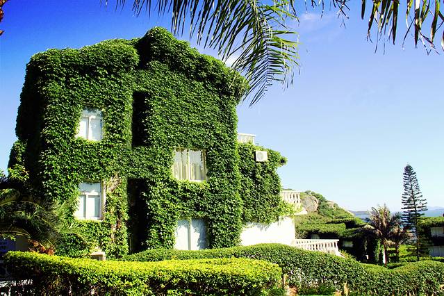 岛上的房子灰常有特色,绿树丛荫
