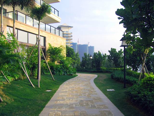 在岛上有一条小路,可以走到岛的志高点,俯望三角洲岛的风光,绿与蓝的结合毫无违和感.~