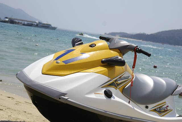 在沙滩边选了一个摩托艇玩,这是我的“战船”