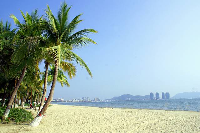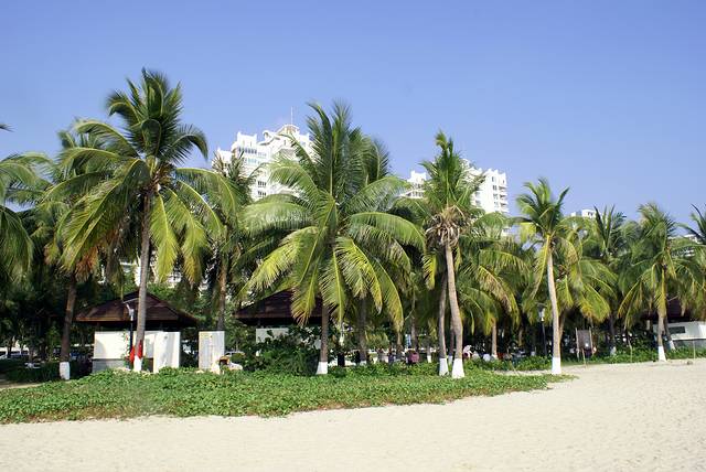 三亚湾的旁边是椰梦长廊,第一次看到一眼望不到尽头的椰树,搭配蓝天与沙滩更为迷人。