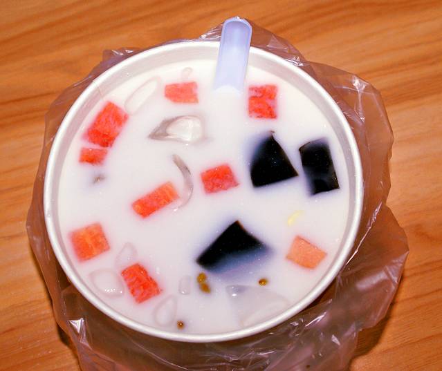 晚上在酒店旁边的饮吧点了清补凉来喝。在盛夏时间吃这种甜品真的是透心凉的感觉,热带必备解暑甜食。