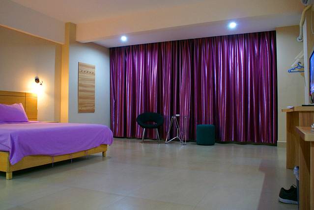由于所住的位置不是海边,所以性价比灰常不错(价格90元,房间空间大,设施基本都有)而且在市中心,吃行都方便!