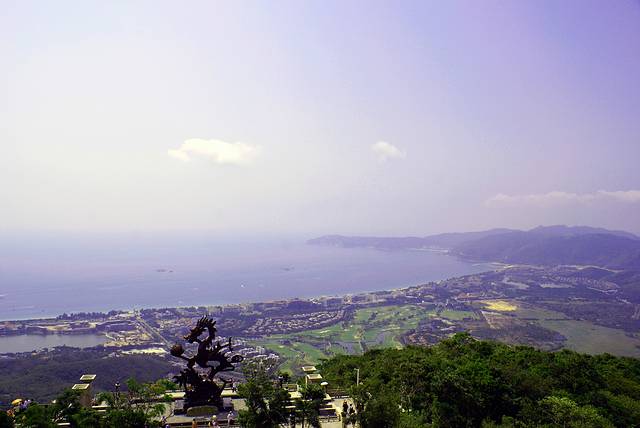 站到山顶,雾气让亚龙湾若隐若现。但依然可以呼吸到空气的清新,好一座天热的氧吧!