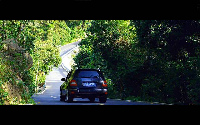 乘坐景区的电瓶车,绕着像电影中的那条盘山森林之路到达山顶~