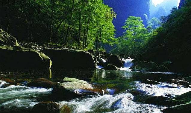 柳暗花明,却见深谷中长出一根根石柱,大小高低不一。云雾缭绕,犹如仙境。这正是藏于深闺之中的袁家界后花园