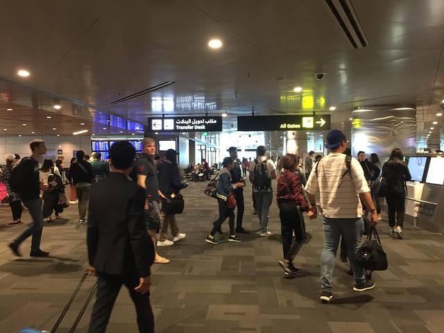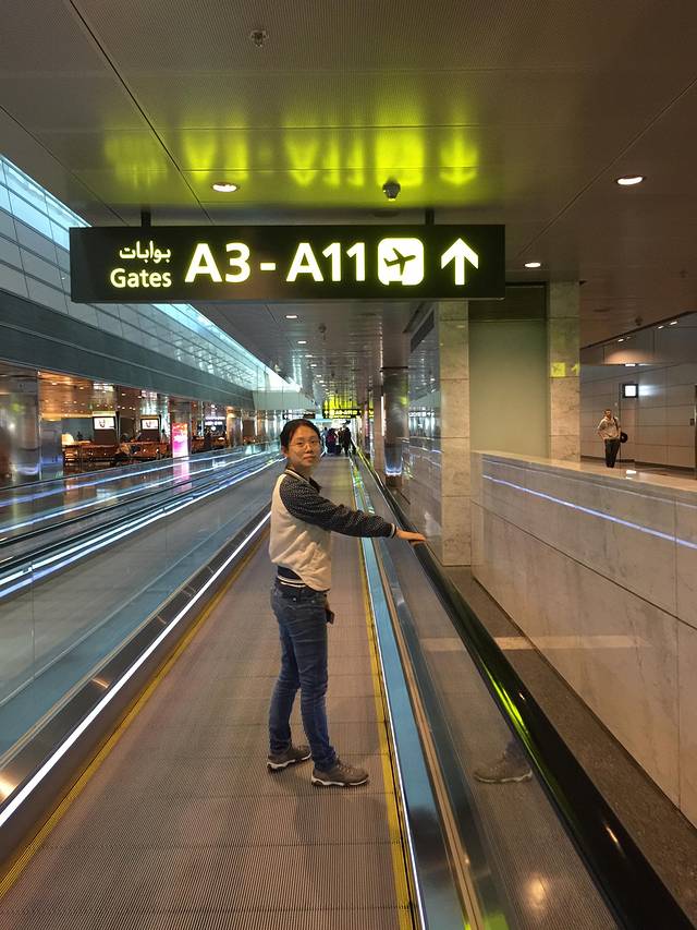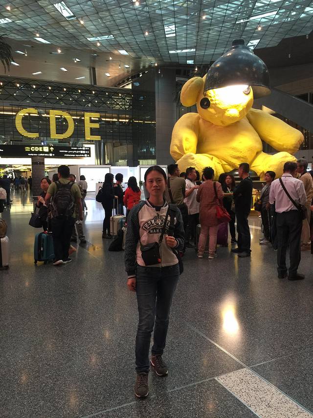 飞了九个多小时,除了吃东西,基本都在睡觉,多哈当地时间早上5点多飞机准时落地,中转时间一个半小时,时间不长,机场转了一下,只有在中间熊那里能连上免费WIFI,发了几个消息,去登机口准备登机了。