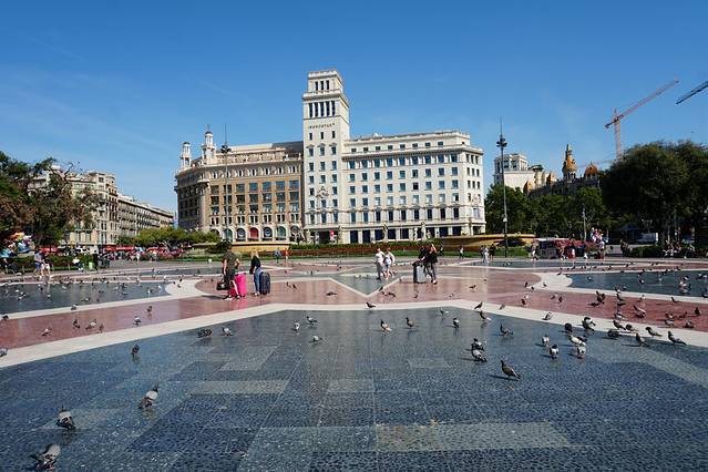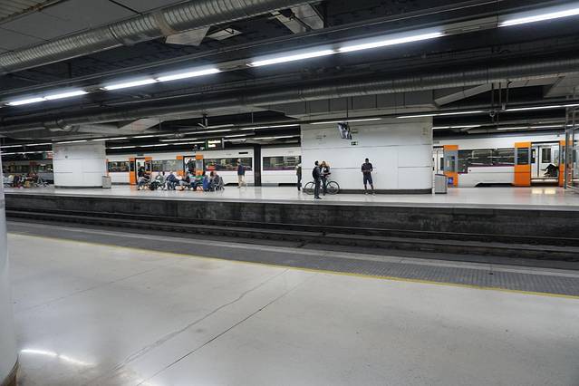 吃饱喝足,出门前往加泰罗尼亚广场,走到sants火车站,坐Renfe的市区火车R4到加泰罗尼亚广场,只有一个站,5分钟,这个火车不属于地铁,应该是连接城市郊区的火车线路,在市区范围内车站乘坐和地铁公交一样可以使用城市公交卡次卡。