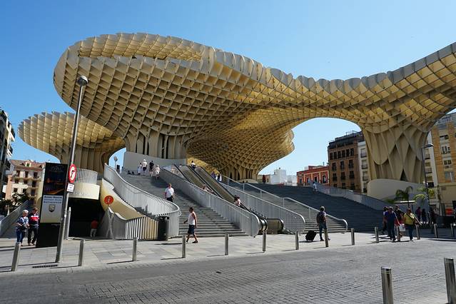 今天早上的目标就是这里,这个塞维利亚大伞的建筑,一个网红的打卡地,真的就是个打卡地,建筑是很有艺术性,但是时间不充裕也没必要去了,建筑下面是一个围绕着发掘的历史遗迹修建的博物馆,没有进去仔细参观。