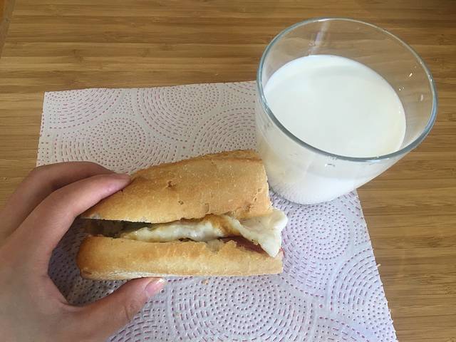 早餐是自己用超市买的法棍做的三明治,配了煎蛋还有西班牙火腿,牛奶也是超市买的,好喝!
