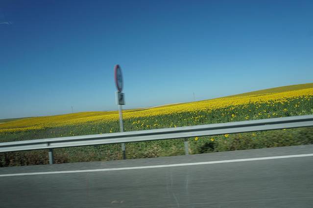 路上看到大量这样连成片的农作物,包括一些不高的山地,都种满了向日葵或橄榄,看得出农业确实很发达
