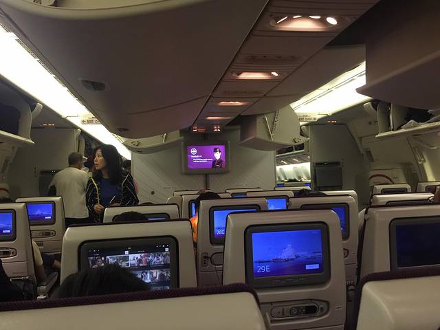 等啊等,终于登机了!但是,飞机竟然不是A380!当初定票的时候就是看着A380才选的这个航司,换成了波音777。