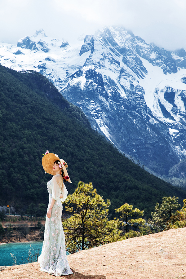 一早就被化妆师拉起来化妆做造型,折腾到接近九点半终于开车出发去往这段旅途最想去的 玉龙雪山 。“欧鲁”是纳西语中的 玉龙雪山 ,也被译为“ 天山 ”。在纳西族占总人口约19%的 丽江 , 玉龙雪山 也被视为是神明的象征。之所以叫“ 玉龙雪山 ”,因为他那宛如一条腾飞的巨龙的十三座雪峰连绵不绝,错落有致。纳西族信奉 玉龙雪山 为他们的神仙,也是他们的保护神“三多”的化身。
