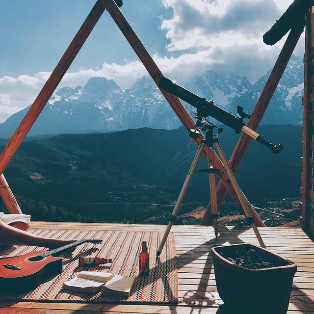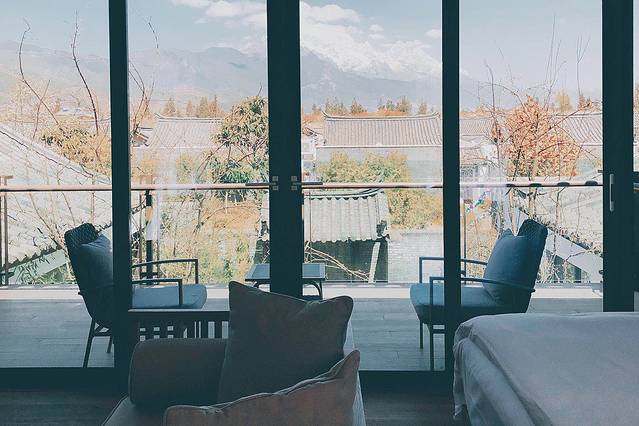 🏷️摄于 丽江 云涧度假酒店雪山观景套房内 | 露台以及不远处的雪山