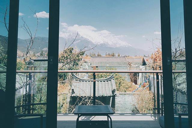 🏷️摄于 丽江 云涧度假酒店 | 从前台进门处可以看到不远处的 玉龙雪山 。