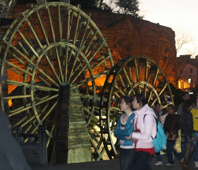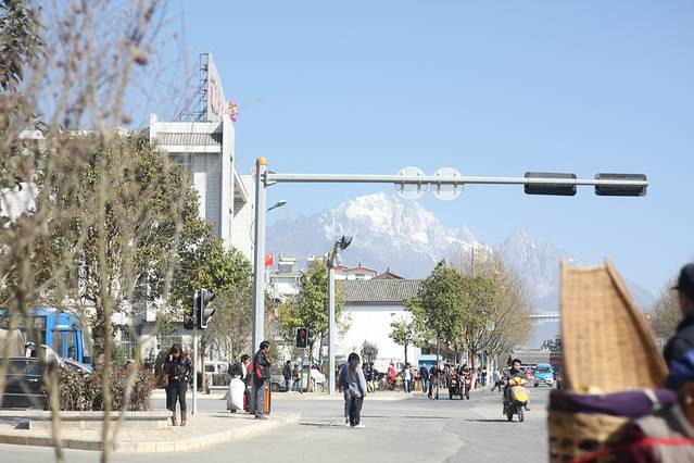 古镇白天很热闹,人多,店铺多,美食多。大水车可以看到雪山顶,丽江古城的许多地方,抬头都能看到雪山。