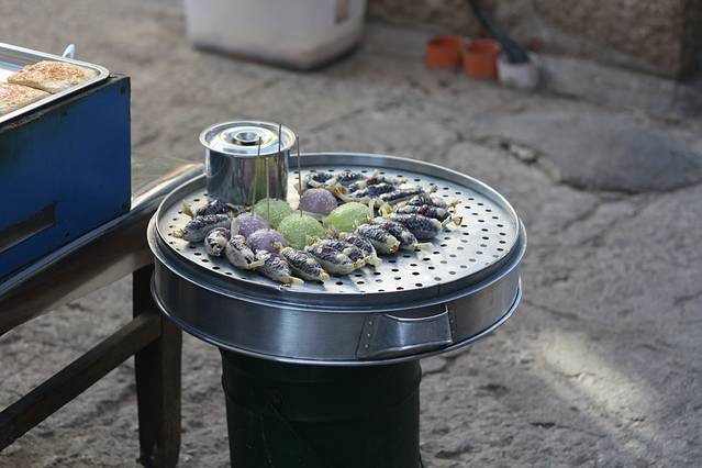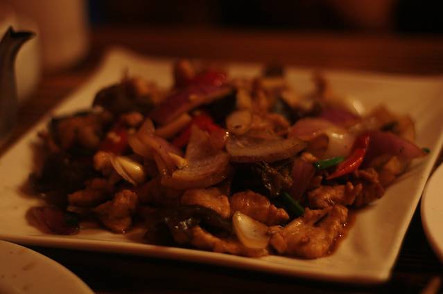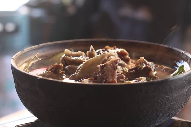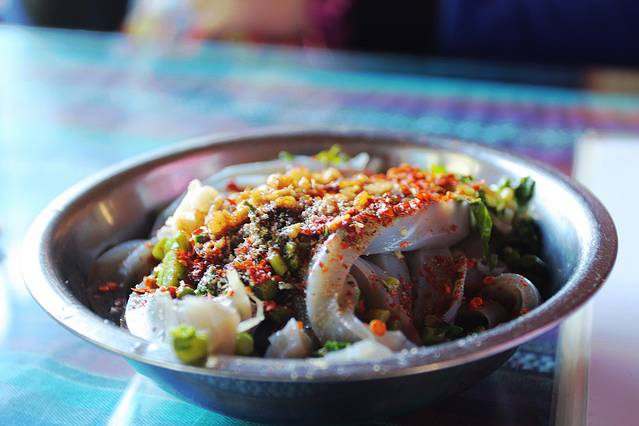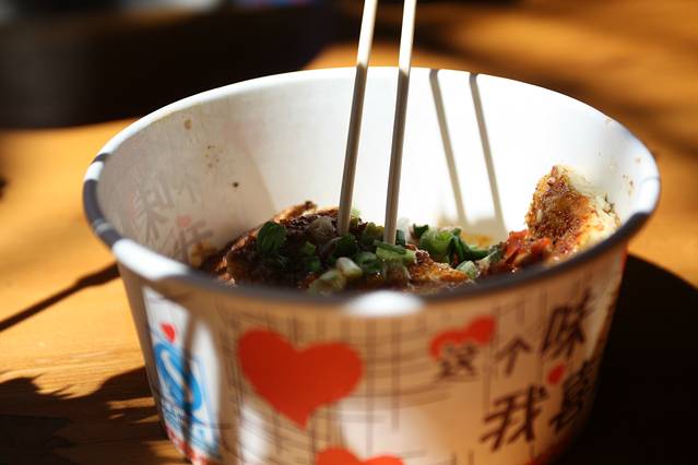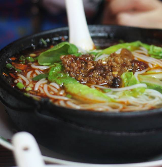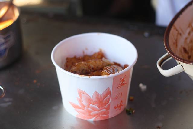 城外的一个市场里,这家据说是腊排骨的鼻祖。环境很简陋,腊排骨分量还算足,可以涮菜,蘸料是辣椒片配腐乳吃的时候加一点汤做蘸料。味道很不错,清淡不腻,又有些特别的味道。