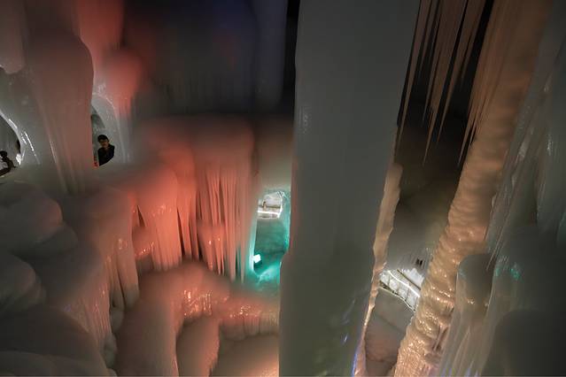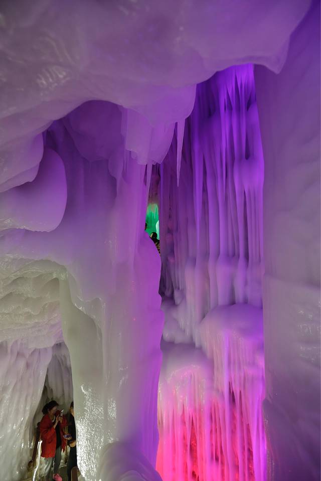 炎热夏天,来到这个冰的王国!好像来到了另一个世界!冰洞,冰凌,冰柱,冰笋,冰花,太奇妙了!一步进入了冬季!感觉就是妙!