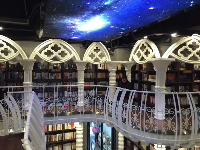 书店的装修确实很美,书的种类也很齐全天花板上是没有死角的镜子,脚下也是透明的玻璃,而玻璃下方是非常多的书,一进去仿佛进入了书的怀抱。