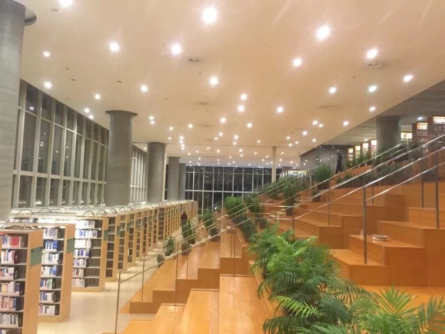 书店广场门口很多外卖小哥,但是一点都不影响我对它的喜欢,整个图书馆的色调是有点黄的油漆色,我把整个图书馆了一遍,其实最重要是找《LP》上写到的空中花园,最后找到了悬挂在图书馆上空的花园的确很美,可惜没有对外开放。