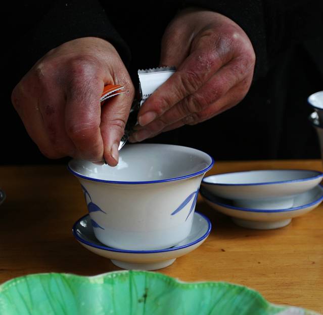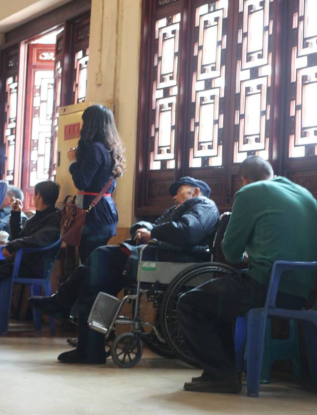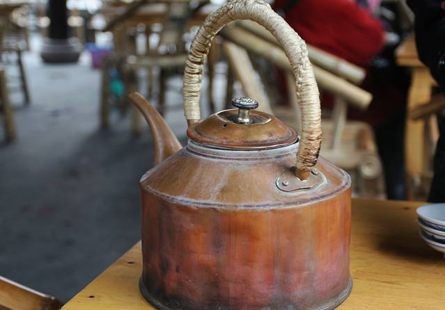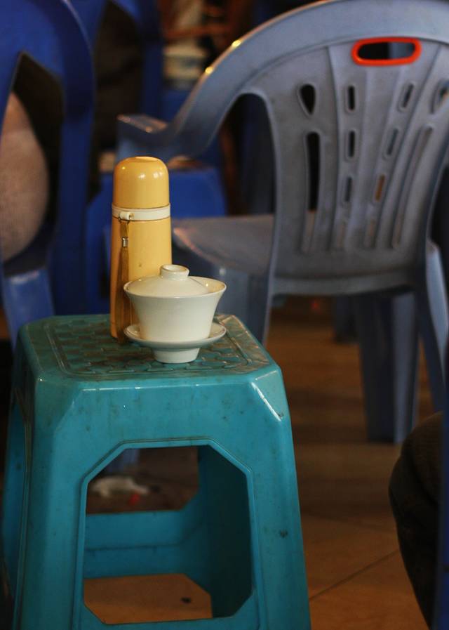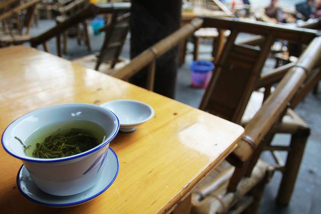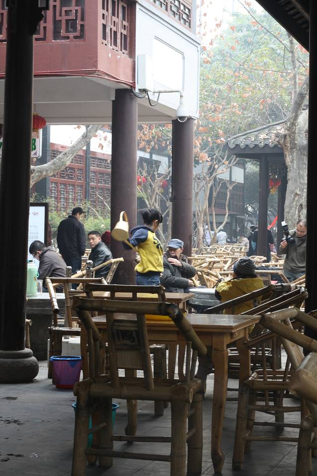 盖碗茶,有往来补水的大叔,很客气的问,需要添水么。