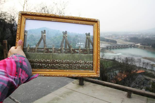 被拉到一个山坡,说是收30块门票,有一个手写的价格牌,感觉是没被物价局监督过的价格,据说山顶的角度更好,也更壮观。导游还给讲解了都江堰的水利工程原理,俯瞰的角度确实还不错,不过车费倒是不值的。