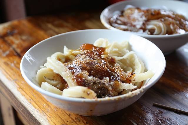 甜水面,面很劲道,甜麻口味,还有些酱油汁的味道。