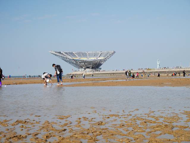 山海广场是一个适合赶海的地方,早起的时候人会少一些,带着点盐,带着小撬,会挖到小鱼小螃蟹,用来玩还好,用来吃的话太小了。