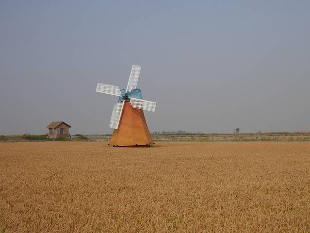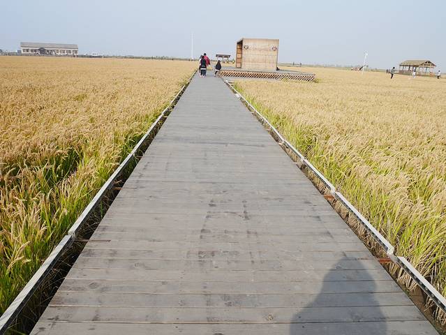 稻田里面剪出不同图案,旁边有观景台可以俯瞰到不一样的风景,十一点时候麦田是金黄色,风吹麦浪有些美。