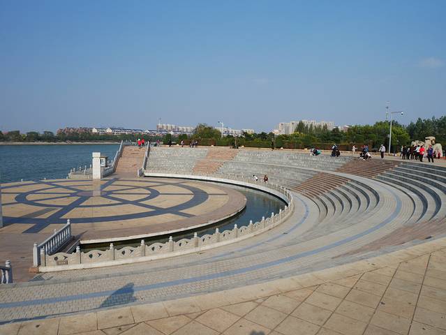 月亮湖像公园一样的地方,有一个月亮雕塑的湖面,住的酒店就在旁边,日出景色很好看。公园里还有一些游乐项目,许多当地的孩子会在这里玩。