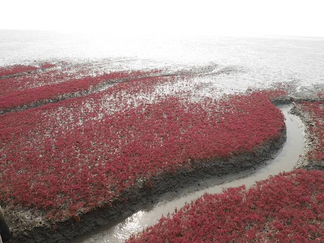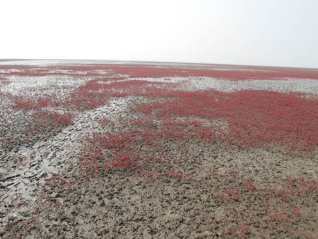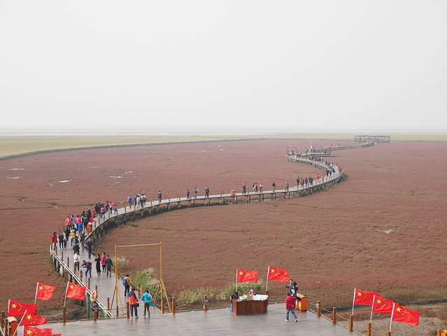 这个景区旁边有一个观景台是看红海滩的最佳角度,不是走到深处景色最美,真的是站的更高看的更远。