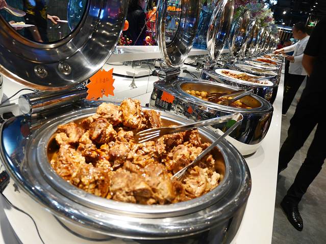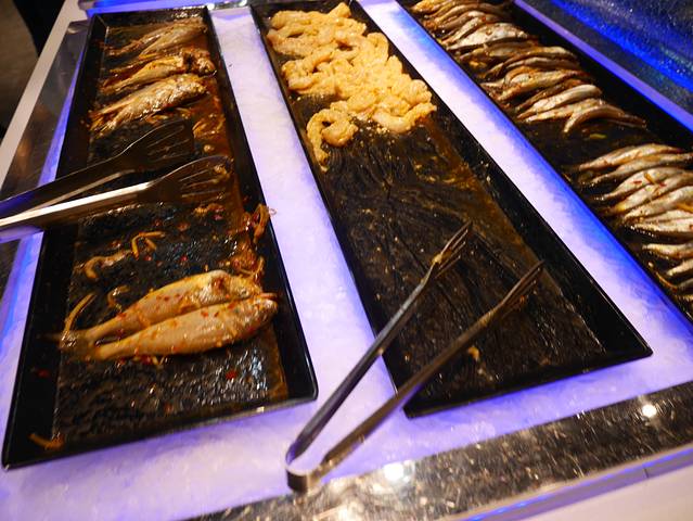 万达商场里的海鲜自助,80左右的价格,海鲜种类很多,还有自助冰淇淋,第一次卷冰淇淋机很有意思,可以玩好久。螃蟹虽然不大,但是很新鲜。有两个锅,一个煮的,一个烤盘,可以同时开启。菜品种类很多,而且味道也不错。寿司有军舰寿司,食材还可以,蒜蓉粉丝海鲜很喜欢,汤汁很多,煮过的粉丝和虾仁都比较入味。大串,梅肉,烤肠,鱼丸,鸡翅品质都不错。水果是新鲜的,西瓜也不错。
