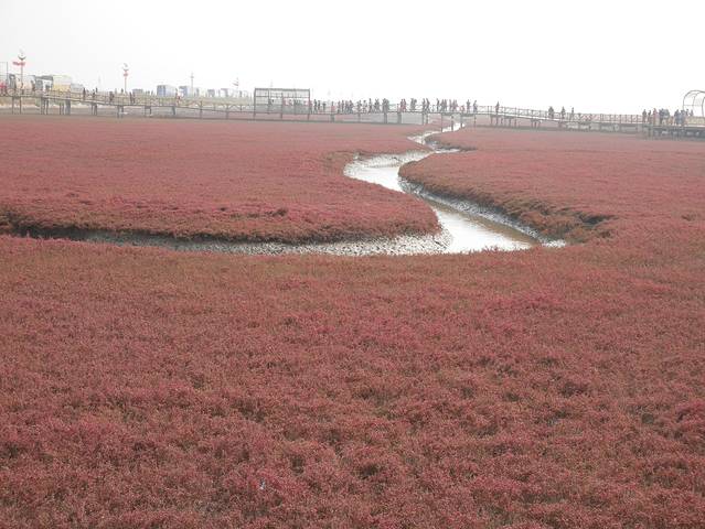 红海滩是一直想看的,十一前后季节最好,红海滩的颜色最艳丽。红海滩在盘锦,在鲅鱼圈报团一日游距离很近也比较方便。红海滩是一片红色的碱草,这里还有盘锦河蟹,栈道旁边的小洞里面爬来爬去,景区还有钓螃蟹的服务,价格不算贵。盘锦大米也是很出名的,适合当伴手礼。