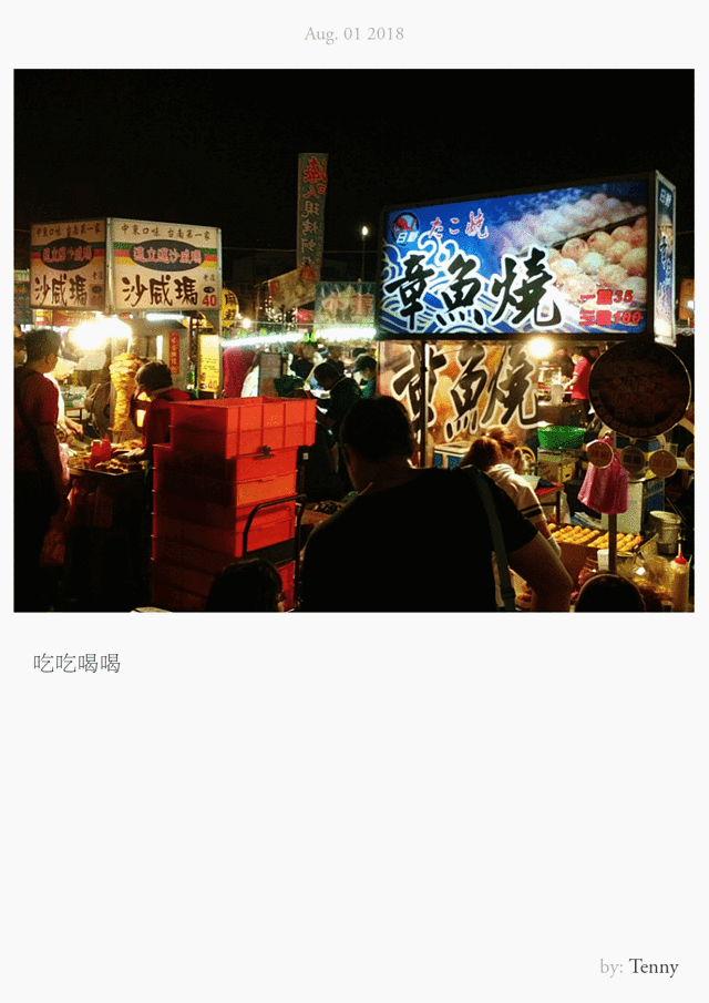 本来我们安排的是花园夜市,但是到了才知道花园夜市今天不开。台南夜市不像台北,是分周几开的,才知道当时台胞给我发的“【大大武花大花花】”是什么意思,是从周一到周日每天会开的夜市,大是大东、武是武圣、花是花园。反正自己骑电车去哪里都方便,直接就开车去武圣了。