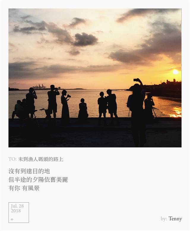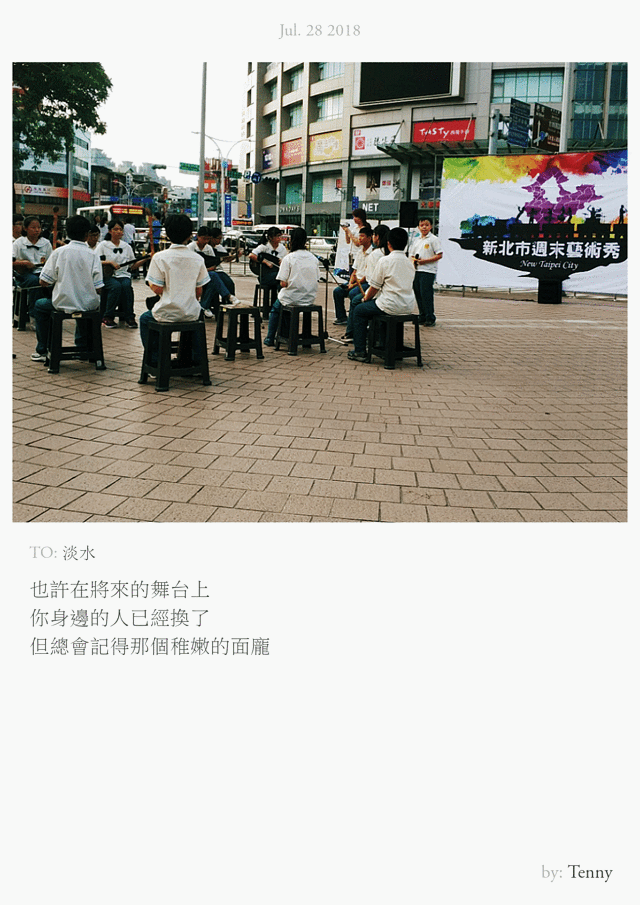 刚刚出淡水捷运站就看到了某个小学在街边演出,想感受一下湾湾人民的日常生活,导致最后没有赶上在渔人码头看日落,但是在路上拍到的这个照片算是我此行最满意的照片了。