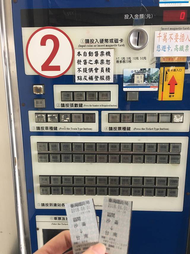 高铁、火车票【不需要提前买】的,携程什么的提前买还要手续费,先提前查好车次,到某个车站的自动售票机去买就好了,用不了有密码的信用卡,但是可以刷visa。我们就是到台北车站一次性把所有的车票都买完了,【一定要保管好】。