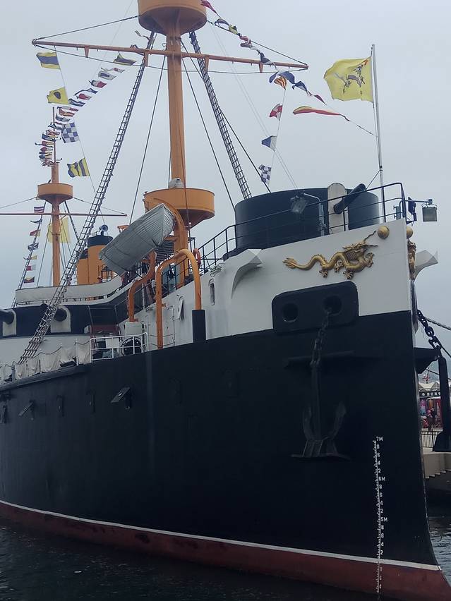 今天游玩定远舰和刘公岛两个景点。定远舰景点和刘公岛轮船码头紧挨着。由于海上有雾轮船暂时停航,于是我们先参观定远舰。这两个景点我觉得定远舰可以看看。诺大的刘公岛除了甲午海战博物馆和北洋水师都督府就没有太多可游玩的景点,而且120元/人的门票着实不便宜,性价比不高。