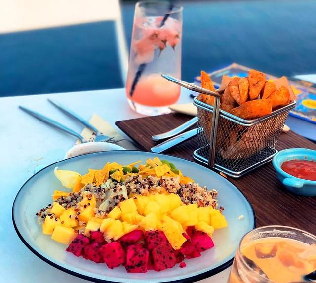 这家咖啡店的环境不用说啦,美得让人惊喜!金色的沙滩配上蓝色的海面,在波光粼粼里尽显风情,点上一份甜品一杯咖啡,和朋友尽情享受吧~