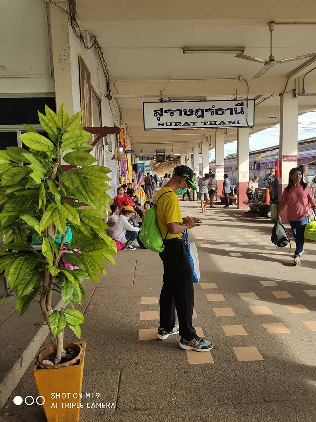 坐上船晃晃荡荡了几个小时靠岸,坐车送我们去火车站(本次泰国心心念念想体验一下泰国的卧铺)