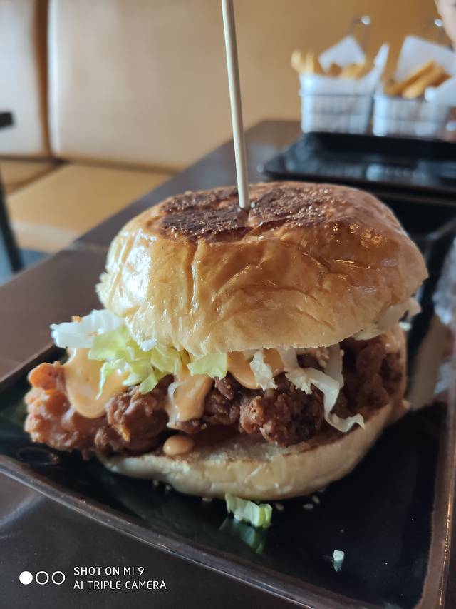 吃完了才想起拍照来,大家注意汉堡中间的肉,那是一整块鸡胸肉。还带着一份薯条的餐分量很足。