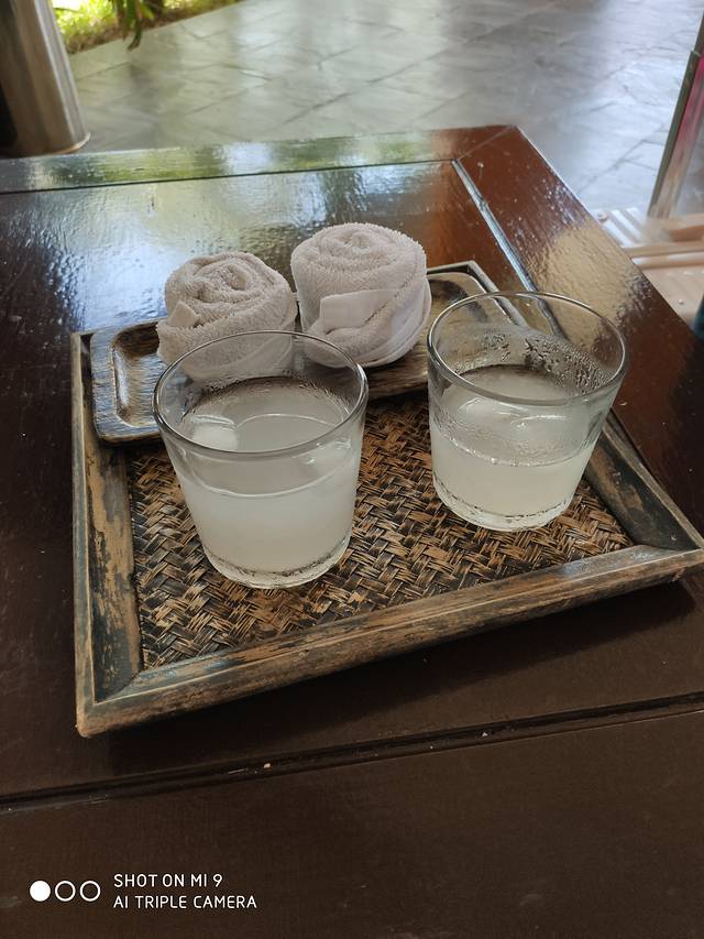 苏梅岛酒店的欢迎饮料荔枝水和冰毛巾,这个真的很巴适