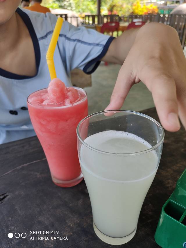 一杯西瓜沙冰,一杯青柠檬汁。这餐一共花了605泰铢。