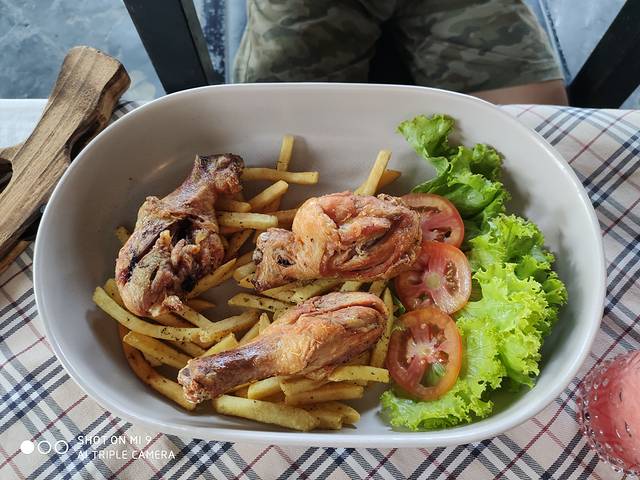 儿子点的西瓜汁、薯条和炸琵琶腿,后来证明太多了,琵琶腿就吃了两口