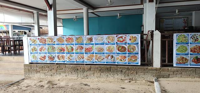 潜校除了菜单还有这样的墙,可以直接叫服务生在门口指着图片点餐,后来的几天儿子都是自己来点餐的:“this one”。而且不要怀疑图片,实物就是图片上的样子和分量,我们接下来的几天一直被鄙视,因为浪费食物实在是太大份了,吃不完。