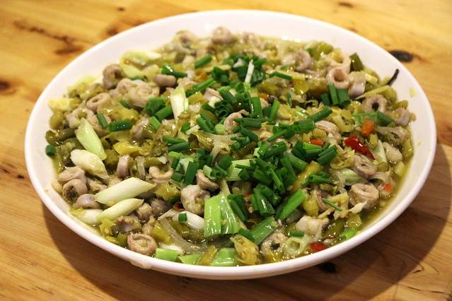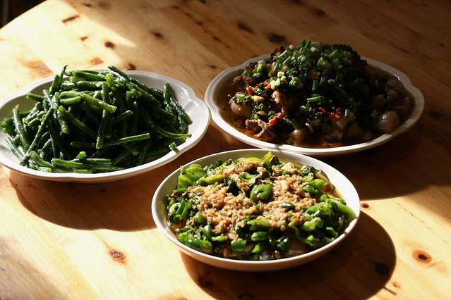 漂流完后在景区洗漱了(漂流铁定打湿,所以一定要带换的衣物),这里有热水供应,对于女生来说,还是不错的。简单收拾自己后随即返程,途中在一品街上找了一家街边小店吃饭。店面虽小,看起来有点简陋,但卫生比很多店好,我们两个人只随意点了几个菜,有泡椒小肠、烧椒猪蹄还有凉拌豇豆,价格不贵且每份菜的量都很足,看得出来老板是个实在人,菜的味道不得不说,真的好!好!吃!呀!