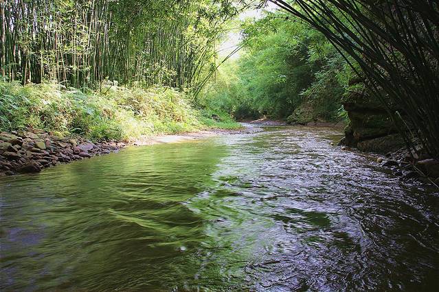 漂流全程时长大约有一个多小时,在漂流上半段水流又大又急,印象最深的是就有15米落差的漂流点,在那儿能体验到的是水流急切拍打在身上的冲击感和大家体验刺激而发出的无限尖叫。我们俩也一直处于嗓子都快喊哑的状态,完全无暇顾及周围的美好的青山绿水;而在漂流的下半段就会平缓很多,我们很享受穿梭在被竹子包围的河道上缓缓漂在水面的感觉,有的是刺激后很惬意放松的心情,能静下心慢慢欣赏周围风景。