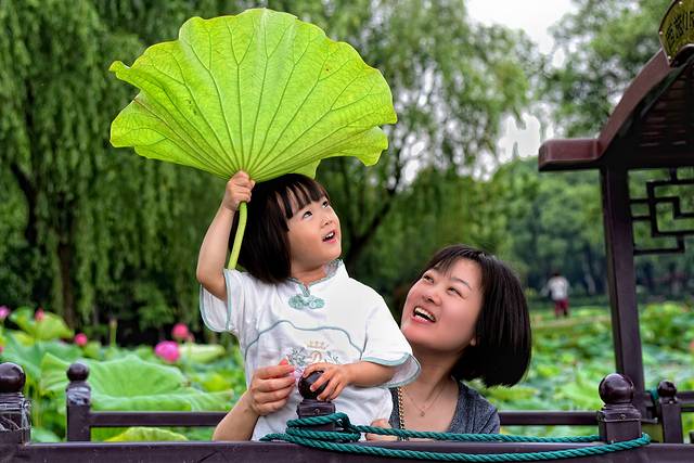 摘一只荷叶,打一把小伞,童心在这里尽情释放,近距离地接触荷花,进一步地亲近自然,给孩子一个的纯真的童年。