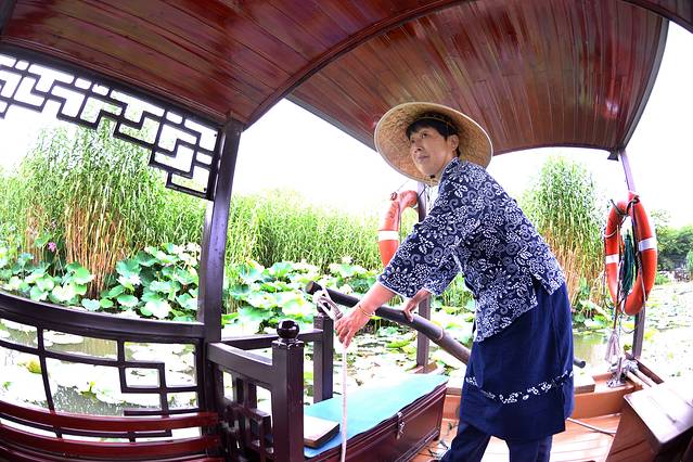 今年暑期,无锡太湖鼋头渚推出了“船娘采莲游”,我们先“采”为快。乘游船随船娘划向水景苑的荷花深处,与荷花来个近距离的亲密接触。