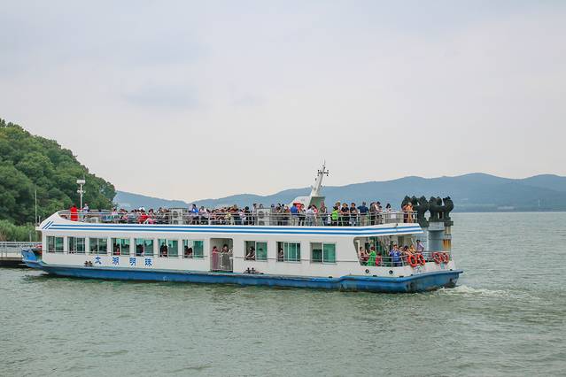 太湖仙岛是太湖风景区较为著名的一组岛屿,也是鼋头渚景区最负盛名的一处景点。太湖仙岛需乘船前往,有水上游船、七桅古帆船、摇橹船、太湖飞鱼、快艇等多种船型可供选择。我们乘坐的是游船,等游客差不多坐满之后,船就缓缓向太湖仙岛驶去了。