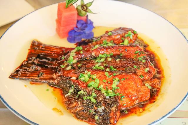 无锡排骨是必点之菜。酱红的色泽看上去就很有食欲了,夹起一块轻轻咀嚼,细嫩酥烂的肉质和浓郁的骨香立刻就充斥满整个口腔。入口之后满嘴余香,回味无穷。无锡排骨咸中带甜,平时不太喜欢甜食,但无锡排骨的甜恰到好处,非常喜欢。
