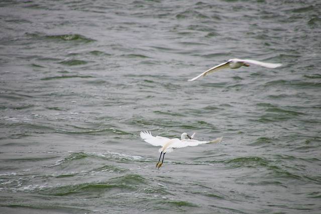 我凭栏远眺,正沉醉在太湖水天一色的美景中,不觉间被一群跟随游船飞行的湖鸥打断了思绪。这些小精灵打破了太湖的沉寂,时而在空中盘旋,时而轻盈地飘落在湖面,时而又会与游客来个近距离接触……给鼋头渚平添了一派生气,也给游客带来了不少乐趣。